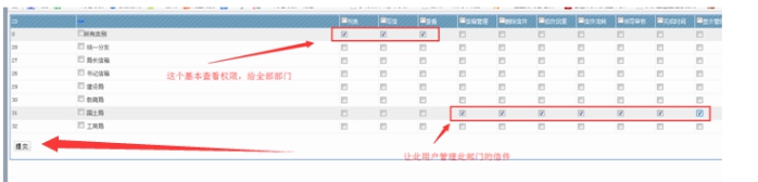 右邊的管理權限根據(jù)自己所管理的部門,去勾選即可。