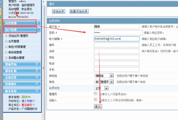4)添加會員:如果需要添加會員,可以后臺此處添加會員。
