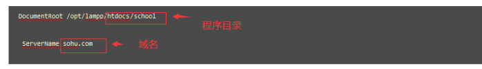 B: 此文件中xampp為我們創(chuàng)建了兩個(gè)示例, 然后修改為我們自己需要的域名和程序目錄即可: