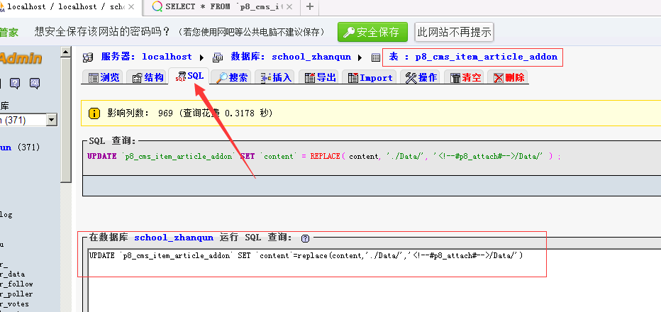 需要修改數(shù)據(jù)表當(dāng)中的記錄數(shù)據(jù),查看p8_sites_item,p8_sites_item_article_表中frame字段中圖片地址的形式和p8_sites_item_article_addon數(shù)據(jù)表中的addon_frame和content中附件地址的寫法,在當(dāng)前項(xiàng)目中,附件地址都是以./Data/開始,下圖是替換p8_sites_item_article_addon數(shù)據(jù)表中的addon_frame和content中附件地址: