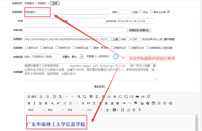 A:下面對(duì)單網(wǎng)頁標(biāo)題、所屬欄目、發(fā)布時(shí)間進(jìn)行修改