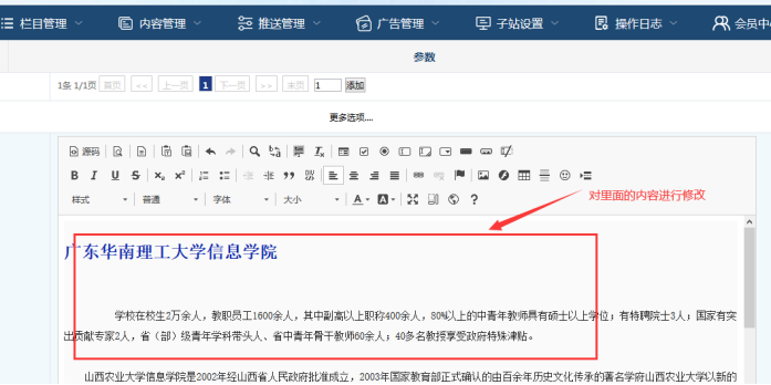 B:下面編輯器中,就是單網(wǎng)頁的內(nèi)容,直接在編輯框中修改