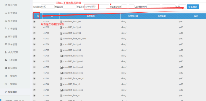 C:在標(biāo)簽?zāi)K里面---輸入這個(gè)站點(diǎn)別名,比如【yx80】------點(diǎn)擊標(biāo)簽搜索----可以看到這個(gè)站點(diǎn)的所有標(biāo)簽,這個(gè)時(shí)候,你可以查看是否有多余的。