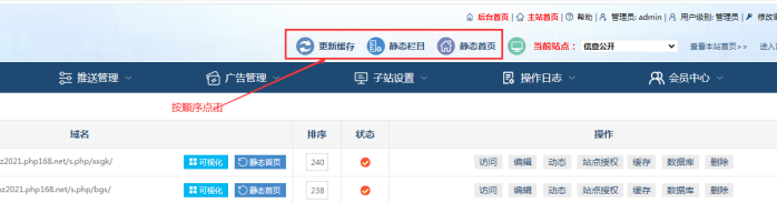 操作完后,就可以進入網(wǎng)站后臺-----點擊更新緩存-----點擊靜態(tài)首頁-----再刷新首頁看效果