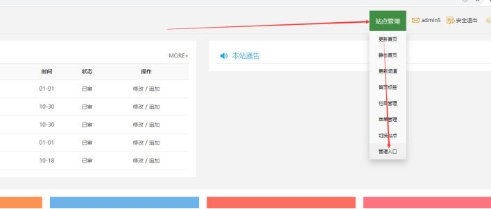 對本站點的欄目、菜單、內容、設置、橫幅替換、網站名字等所有進行管理。僅限站點管理員才有權限進去。