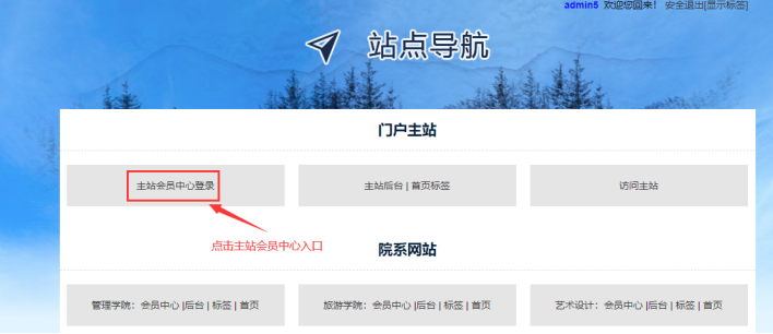 打開統一登陸入口------點擊【主站會員中心】入口------鼠標放在【站點管理】按鈕上-----點擊【管理入口】: