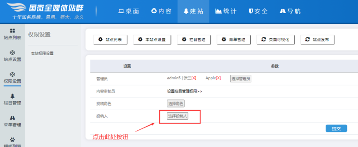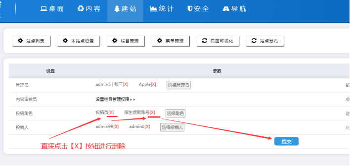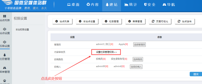 說明:分站管理員可以設(shè)置本站【投稿員】權(quán)限。其他操作只能是超管或特定權(quán)限的人才可操作。