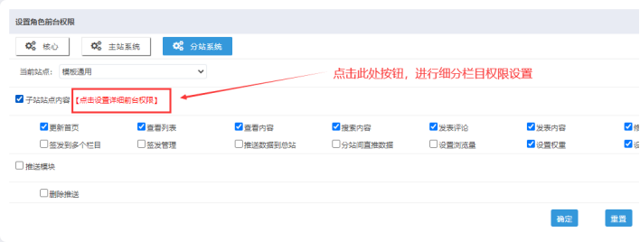就是對管理哪幾個欄目進行選擇-------點擊【點擊設(shè)置詳細前臺權(quán)限】按鈕