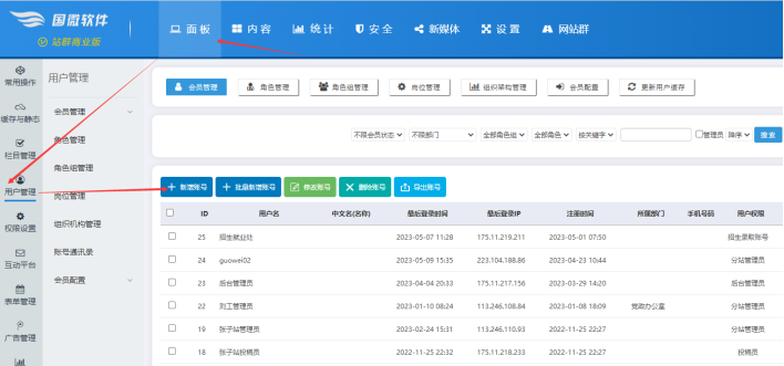 設(shè)置權(quán)限前,需要先添加賬號,賬號根據(jù)自身所需提早歸納到某些【角色】下,因為這些【角色】自帶一些特定權(quán)限,比如分站管理員賬號就需要放到【分站管理員】角色下。只有特定的人才有權(quán)限添加賬號。可以查看另外額外的教程。