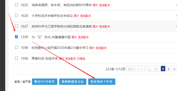 點擊左邊的【我簽核的內(nèi)容】----勾選對應(yīng)的內(nèi)容---------鼠標(biāo)點擊【簽發(fā)到多個欄目】按鈕上,效果如下: