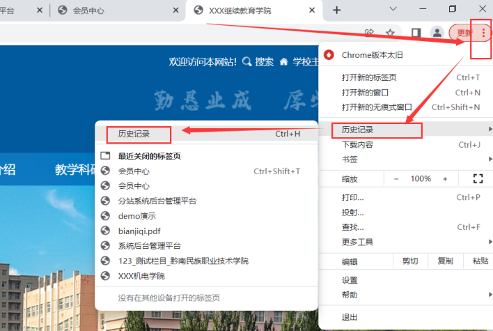 如果上面刷新方法試過(guò)了,還沒(méi)有效果,那么就考慮徹底清理下瀏覽器訪問(wèn)記錄,再快速刷新頁(yè)面兩次即可,方法如下