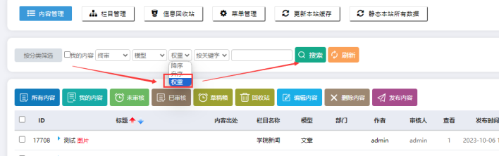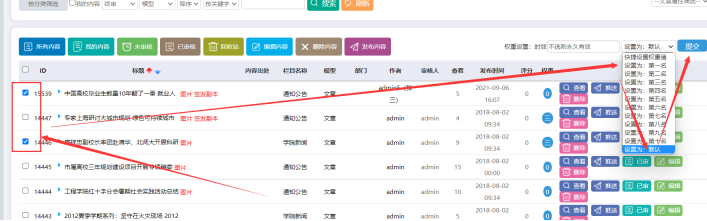 有時候我們需要將內容設置置頂,或者多篇內容進行多個置頂排名,就可以用到這個權重功能。