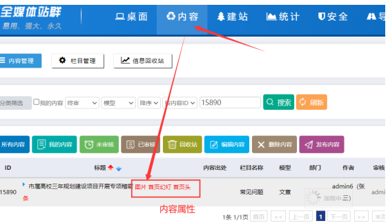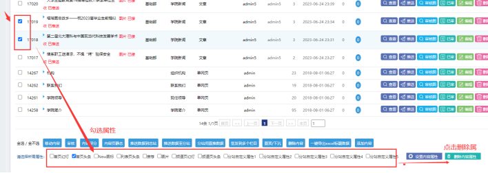 有時(shí)候我們管理員需要對(duì)某些內(nèi)容進(jìn)行網(wǎng)站頭條、幻燈片、推薦等屬性設(shè)置。就可以用到這個(gè)功能,這個(gè)需要事先管理員對(duì)模板位置先進(jìn)行標(biāo)簽設(shè)置調(diào)用。