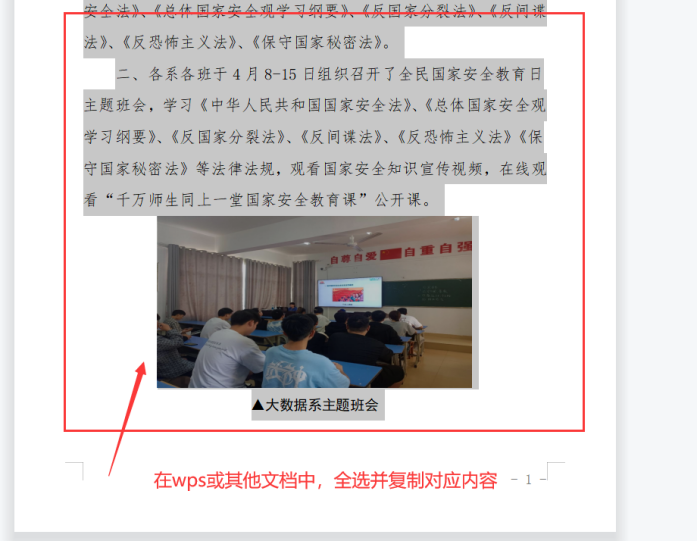 A、打開相關(guān)內(nèi)容,wps和docx等其他格式文檔均可,全選并復(fù)制相關(guān)內(nèi)容;然后打開網(wǎng)站發(fā)布內(nèi)容,直接將上面內(nèi)容粘貼(只能用ctl+V的粘貼方式)到編輯器里面: