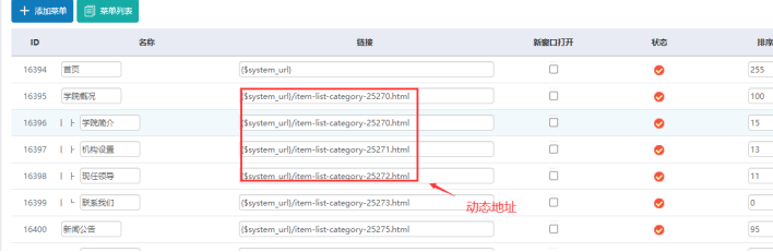 備注:或者直接復制另外菜單的靜態地址,粘貼到新菜單上,修改上面對應的欄目ID數字即可。