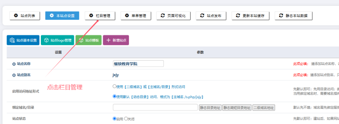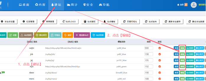 六、最后點擊【建站】------點擊【更新本站緩存】和【靜態本站數據】