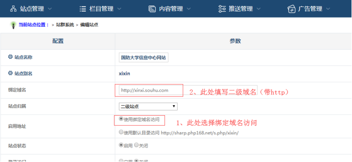 三、網站后臺將二級域名綁定