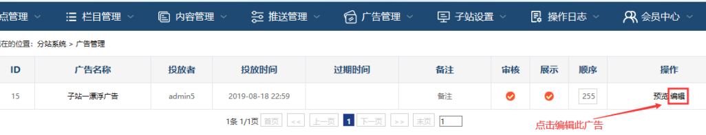 如果要管理之前投放過的漂浮廣告,只是修改之前的廣告,就點擊此處即可:
