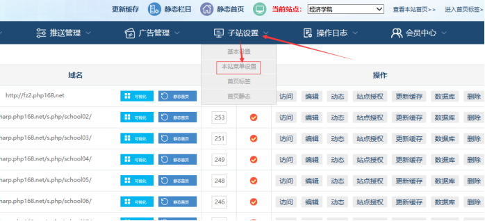 進入子站站群后臺-----點擊子站設置-----點擊“本站菜單設置”