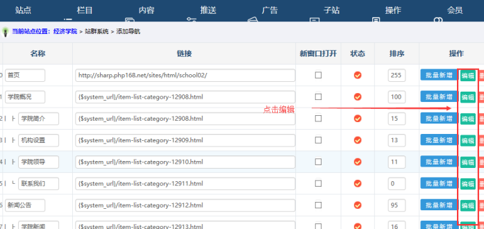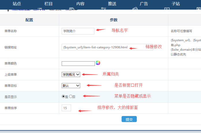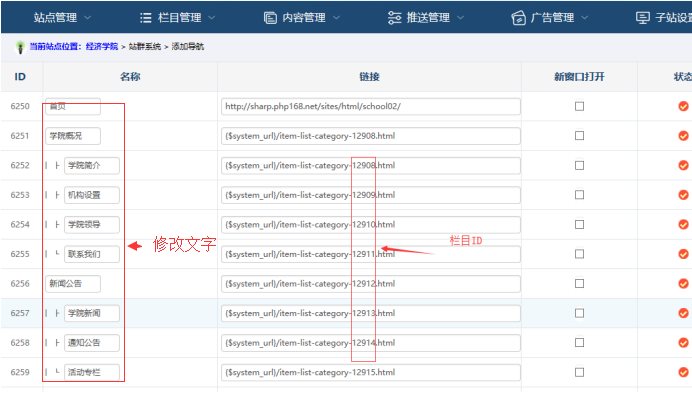 每個站點的管理員,都可以設置自己的導航菜單;菜單上的鏈接,就是對于本站欄目ID。