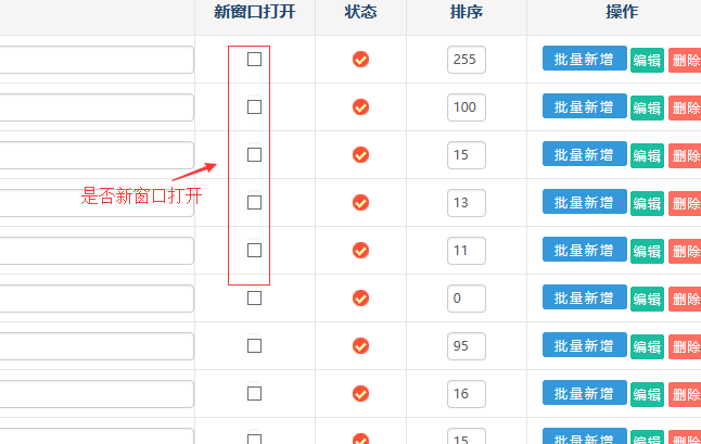 “勾選”則表示此菜單新窗口打開,默認不選則是母窗口打開!