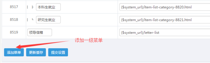 菜單鏈接動態樣式:{$system_url}/item-list-category-欄目ID數字.html
