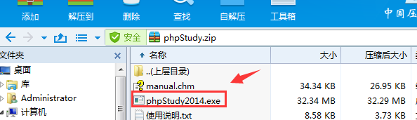 A:雙擊上面的壓縮包,出現此界面,然后直接雙擊 phpstudy2014.exe可執行文件,讓其開始安裝。