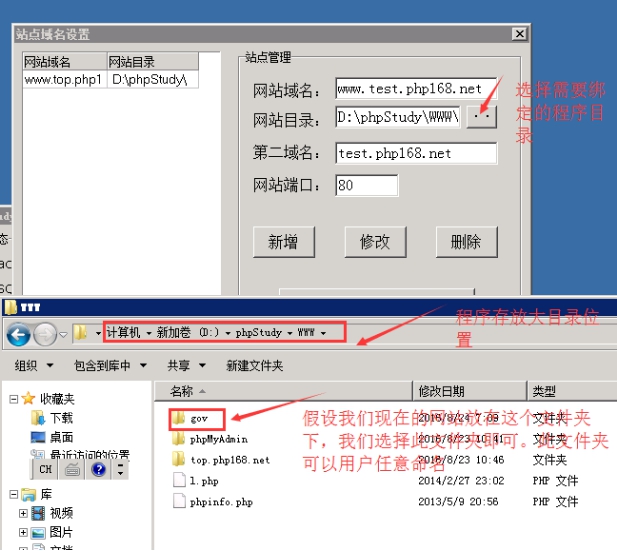 D:需要注意的是,上面填寫的時候,需要選擇網站目錄,網站目錄就是該網站程序存放的位置。假設我們將這個需要安裝的程序,存放在phpstudy對應環境中的www(必須此目錄下)根目錄下-------gov文件夾。那么選擇目錄文件夾即可。